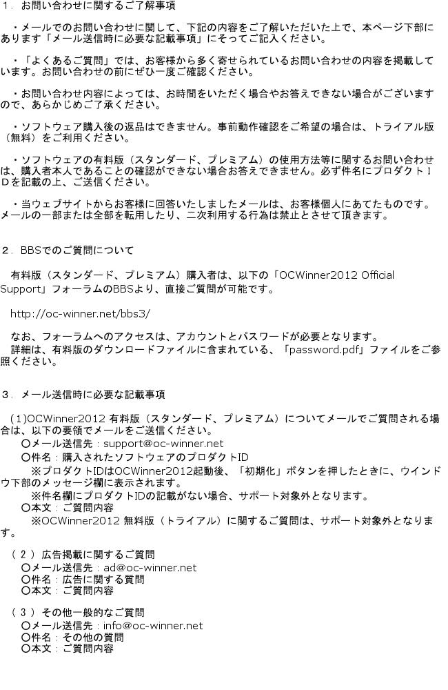 OCWinner2012に関するお問い合わせ